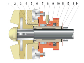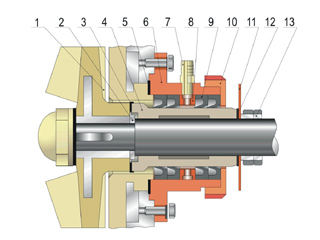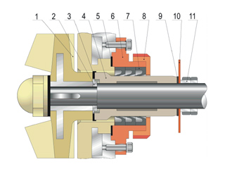 名稱:K1型動密封 結構特點:采用2~4個氟橡膠油封作為密封件,結構簡單、可靠、價格較低,可開空車,壽命比K型長。 適用范圍:主要適用于清液或含固量≤15%的料漿以及含雜質的污水等腐蝕性介質 |