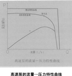 下圖所示為高速泵的典型代表流量~壓力(Q~P)特性曲線: