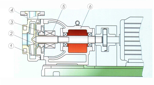 密封結構為外裝、單端面、平衡型,自動調節,不需加冷卻水的機械密封,機封的型號有WB2型MU8型、169型三種,可根據用戶的使用工況條件的不同,選用不同型號結構的機封。機封的主要材料:靜環采用了高純度三氧化二鋁陶瓷、碳化硅、鎳基、鈷基合金;動環采用了填充聚四氟乙烯、碳化硅、鎳基、鈷基合金制成。