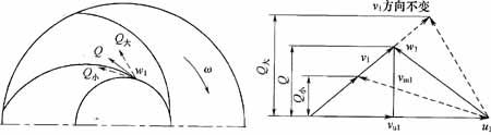 化工泵葉片進口角通常大于液流角,即β1>β1’·。其正沖角為△β=β1-β1’,沖角的范圍通常為△p=3°-15°。采用正沖角能提高抗汽蝕性能,并且對效率影響不大,其原因可作如下解釋(參考圖8-27)。