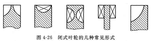 ①閉式葉輪 如圖4-26所示,液體由葉輪的外緣(大直徑處)進(jìn)入葉輪。具有這種構(gòu)形式的旋渦泵揚(yáng)程曲線較陡,在相同葉輪圓周速度下?lián)P程為開式泵的1.5~3倍,效率0.3~0.5,體積較小。但汽蝕性能偏低,在沒有附加氣水分離裝置之前沒有自吸能力,不能氣液混輸: