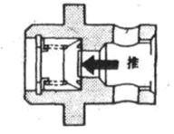 (7)檢查單向閥的動作,當用螺絲改錐或其它工具推壓單向闊時,如下圖所示。閥的動作應平穩,如不合要求,應更換。
