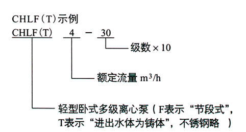 【CHLF型輕型段式不銹鋼多級離心泵】型號意義: