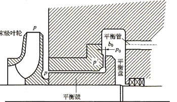 另外還有采用平衡盤(pán)與平衡鼓組合的軸向力平衡裝置,如圖2—7所示。用于大容量高參數(shù)的分段式多級(jí)泵中,效果良好。
