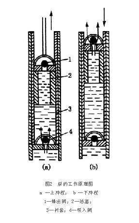 深井泵開泵前,吸入管和泵內必須充滿液體。開泵后,葉輪高速旋轉,其中的液體隨著葉片一起旋轉,在離心力的作用下,飛離葉輪向外射出,射出的液體在泵殼擴散室內速度逐漸變慢,壓力逐漸增加,然后從泵出口,排出管流出。此時,在葉片中心處由于液體被甩向周圍而形成既沒有空氣又沒有液體的真空低壓區,液池中的液體在池面大氣壓的作用下,經吸入管流入泵內,液體就是這樣連續不斷地從液池中被抽吸上來又連續不斷地從排出管流出。