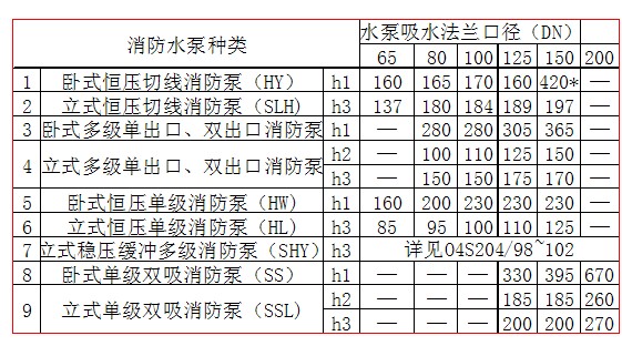 該規格消防泵放氣孔在出水法蘭部位,距吸水口中心高度(h1)為300~420mm