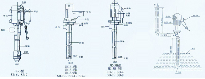 JK-3普通型電動油桶泵是一種新型油類輸送機(jī)具,廣泛適用于各個事業(yè)廠礦單位輸送和抽吸各種油料、如柴油、煤油、機(jī)油等。本泵結(jié)構(gòu)緊湊、性能穩(wěn)定、操作簡單、只要將泵體插入油桶,打開電源開關(guān)即可將桶內(nèi)油料吸出來,方便省力、效率高,本泵配有交流單相電動機(jī)。根據(jù)材質(zhì),電機(jī)不同,型號可分為: JK-3、JK-3B、JK-3-3、JK-3-5、JK-3-7、JK-3-9、JK-3B-7系列(編號為SB-1,SB-1-1,SB-2,S-15,SB-16,SB-2-1SB-3,SB-4,SB-5,SB-6,SB-7,SB-8,SB-10系列)鋁合金,不銹鋼或防爆型。我們備有詳細(xì)資料,歡迎索取。該系列泵可按防爆區(qū)域和非防爆區(qū)域選用,凡在防爆區(qū)域使用配置防爆型電機(jī),這類電機(jī)分三種機(jī)組型號,當(dāng)使用條件含各種易燃易爆混合時,應(yīng)選用高組級。 電動抽液泵是一種新型油類輸送機(jī)具,本泵結(jié)構(gòu)緊湊、性能穩(wěn)定、操作簡單、只要將泵體插入油桶,打開電源開關(guān)即可將桶內(nèi)油料吸出來,方便省力、效率高,本泵配有交流單相電動機(jī)。 二、型號意義: 四、性能參數(shù): JK-3-5P SB-11 50 3.6 5-7 45 20 180 2900 不銹鋼 7 JK-3-5L SB-12 50 3.6 5-7 45 20 180 2900 鋁合金 5 JK-3B-5P SB-15 50 3.6 5-7 45 20 180 2900 不銹鋼 9 JK-3B-5L SB-16 50 3.6 5-7 45 20 180 2900 鋁合金 7 備注:不銹鋼P:一般化學(xué)酸堿液體,水,油類產(chǎn)品液體的使用,鋁合金L:水,油類產(chǎn)品液體用; 泵連軸器,葉輪為RPP增強(qiáng)聚丙烯塑料材質(zhì)。 五、產(chǎn)品結(jié)構(gòu):