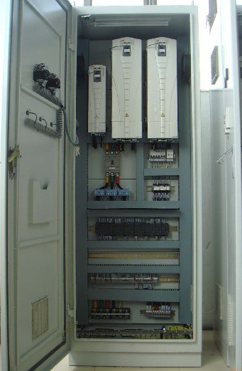 中央控制器即變頻控制柜(箱),主要由PLC控制器、交流變頻器,主開關,變頻器主接觸器、電機控制接觸器,中間繼電器、電機保護熱繼電器、顯示和操作元件、聲光報警用元件、功能選擇用開關等組成。這些器件采用了國際知名品牌,以保證系統運行的可靠性。