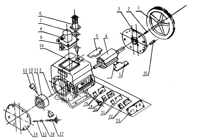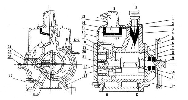 ![]() 圖(3):2X型旋片式真空泵整體結(jié)構(gòu)圖 |