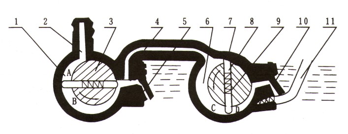 八、2X型旋片式真空泵的組成部分及結(jié)構(gòu)圖: 2X系列的各種真空泵的外形和結(jié)構(gòu)是基本相同的,泵由電機經(jīng)三角皮帶傳動到轉(zhuǎn)子。電動機和泵用螺釘卡板固定在底盤上。 在2X型旋片式真空泵體內(nèi)壓入一個中隔板、將真空泵殼分成高低真空室,各室都有排氣門,高真空室排氣與低真空氣相通。高轉(zhuǎn)子前端伸出前軸;后端伸出后軸。前軸通過前端板的軸承支持、經(jīng)過油密封室而伸出前端板外:后軸由中隔板上的軸承支持。而伸入低真空室內(nèi),低真空室轉(zhuǎn)子則裝在后軸上、故高低轉(zhuǎn)子均由前軸帶動。高低轉(zhuǎn)子都有對開的槽子,呈“T”形的旋片由彈簧支撐開而裝于槽內(nèi)。2X型旋片式真空泵的進氣口處有過濾網(wǎng),而排氣口處有擋油網(wǎng),視鏡左邊有摻氣閥,下邊有放油塞。 |