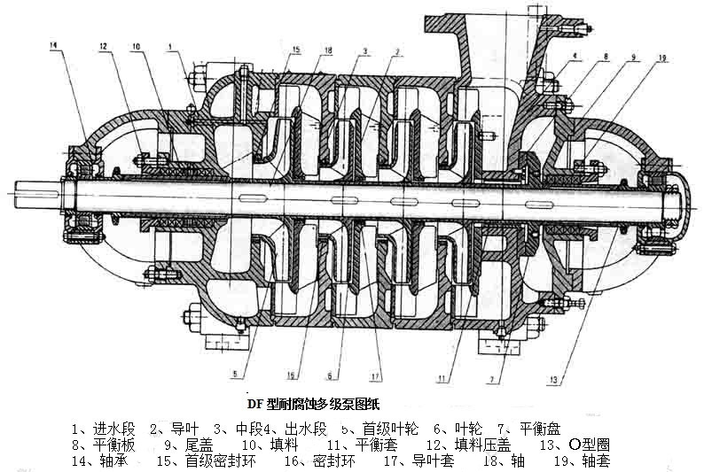 DF型耐腐蝕多級離心泵結構圖: