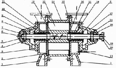 SK型水環(huán)式真空泵的拆卸分為部分拆卸檢査和完全拆卸修理及更換零件,在拆卸前應(yīng)將泵腔內(nèi)的水放出.并將進氣及排氣拆下。在拆卸過程中,應(yīng)將所有的墊謹(jǐn)慎地取下,如發(fā)生損壞'應(yīng)在裝配時更抽象同樣厚度的新墊。泵應(yīng)從后端(無聯(lián)軸器一端) 開始拆卸,其順序如下: