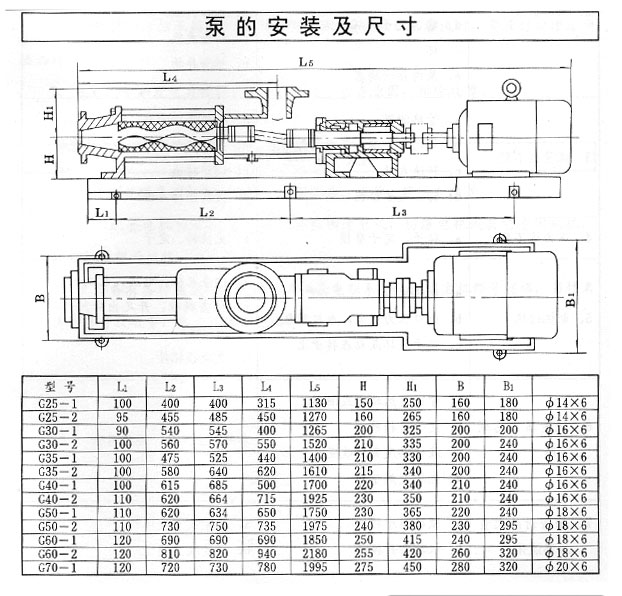 單螺桿泵是按迥轉嚙合容積式原理工作的新型泵種。主要工作部件是偏心螺桿(轉子)和固定的襯套(定子)。由于該二部件的特殊幾何開頭分別形成單獨的密封容腔。介質由軸向均勻推行流動。內部流速代低,容積保持不變。壓力穩定,因而不會產品渦流和攪動。每級泵的輸出壓力為0.6Mpa,揚程60m(清水),自吸高度一般在3m以上。因定子選用多種彈性材料制成,所以這種泵對高粘度流體的輸送和含有硬質懸浮顆粒介質或含有纖維介質的輸送,有一般泵種所不能勝任的特性。其流量與轉速成正比. 傳動可采用聯軸器直接傳動,或采用高速電機,三角帶,變速箱等裝置變速。這種泵零件少,結構緊湊,體積小,維修簡單,轉子和定子是本泵的易損件,結構簡單,便于裝拆.