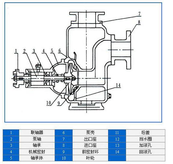 該泵均采用軸向回液的泵體結構。泵體由吸入室、儲液室、渦卷室、回液孔、氣液分離室等組成.?泵正常起動后.葉輪將吸入室所存的液體及吸入管路中的空氣一起吸入.并在葉輪內得以完全混合.?在離心力的作用下,液體夾帶著氣體向渦卷室外緣流動.在葉輪的外緣上形成有一定厚度的白色泡沫帶及高速旋轉液環。氣液混合體通過擴散管迸入氣液分離室。此吋,由于流速突然降低,較輕的氣體從混合氣液中被分離出來,氣體通過泵體吐出口繼續上升排出。脫氣后的液體回到儲液室,并由回流孔再次迸入葉輪,與葉輪內部從吸入管路中吸入的氣體再次混合.在高速旋轉的葉輪作用下,又流向葉輪外緣……。隨著這個過程周而復始地迸行下去.吸入管路中的空氣不斷減少,直到吸盡氣體.完成自吸過程.泵便投入正常作業。因為該泵具有這種獨特的排氣能力,所以此泵能輸送含有氣體的液體,無需安裝底閥.使用在油輪上時具有良好的掃艙功能。