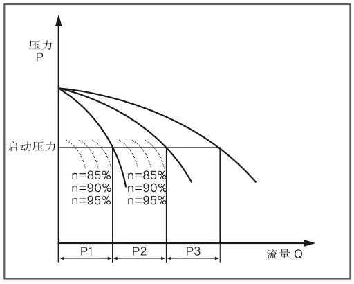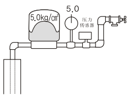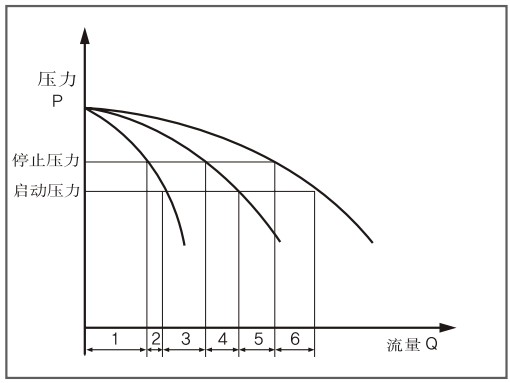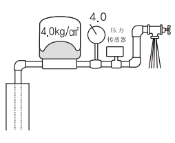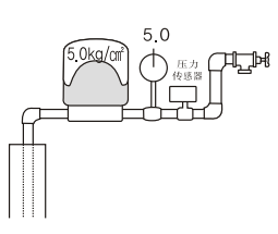 水泵剛運轉時,先給壓力罐補滿水,隨著壓力增大達到設定壓力后,水泵停止。