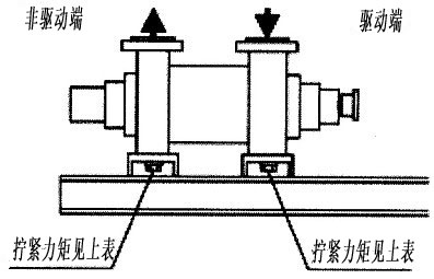 為了傳遞力及力矩,緊定螺栓必須擰緊在泵支腳上。為了彌補(bǔ)由于水泵的熱膨脹可能產(chǎn)生的松動(dòng),非驅(qū)動(dòng)端不必像驅(qū)動(dòng)端擰得那樣緊。驅(qū)動(dòng)端和非驅(qū)動(dòng)端系緊螺釘?shù)臄Q緊力矩見(jiàn)下表。