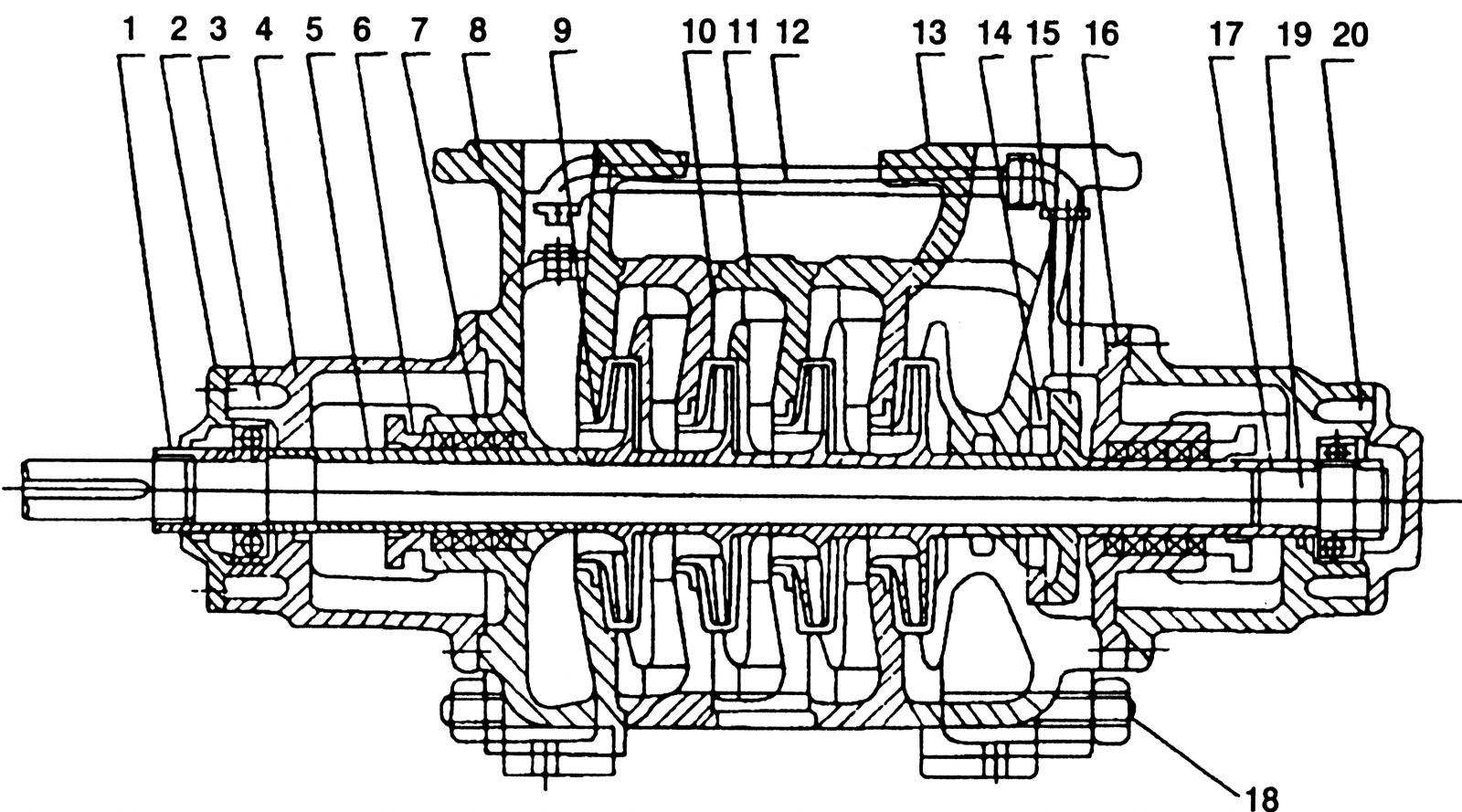 GC型水泵的主要零件有軸、軸套、進水段、葉輪、導翼、密封環、中段、出水段、平衡環、平衡盤、尾蓋。