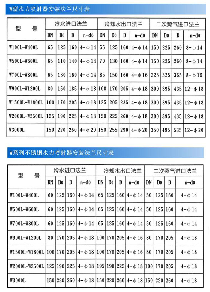 W系列水力噴射器冷水進出口法蘭尺寸