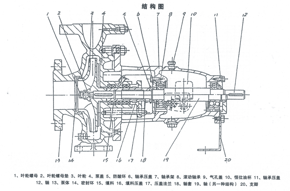 作用于軸封處的壓力由付葉片或葉輪上的平衡孔平衡。軸封既可采用軟填寫料密封(可冷卻,也可不冷卻),也可采用各種結構的單、雙端面機械密封(可采用各種結構的單、雙