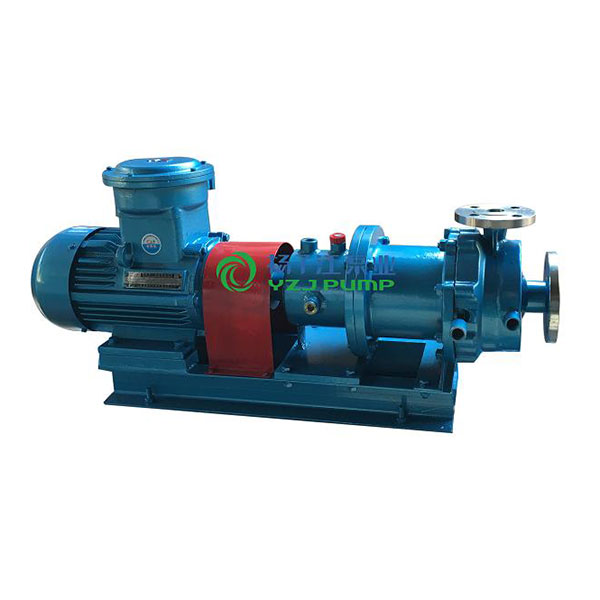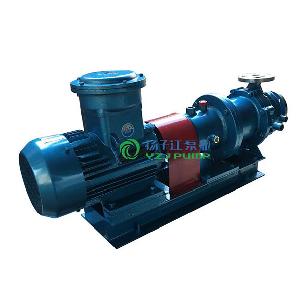 CQB-G高溫磁力驅(qū)動(dòng)離心泵(簡稱高溫磁力泵)通常由電機(jī),磁力偶合器水冷卻裝置和耐腐蝕離心泵四大部分組成,其主要特點(diǎn)是利用磁力偶合器傳遞動(dòng)力,完全無泄漏。當(dāng)電動(dòng)機(jī)帶動(dòng)磁力偶合器的外磁鋼旋轉(zhuǎn)時(shí),磁力線穿過了間隙和隔離套,作