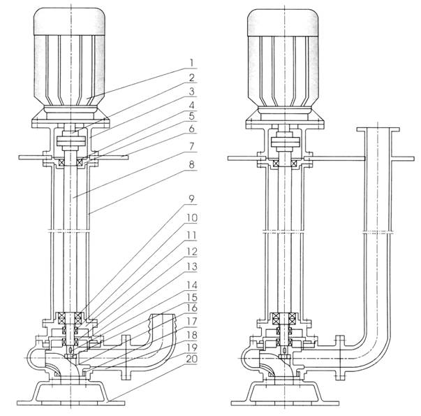 6、泵為立式結(jié)構(gòu),工作時泵體浸在液體中因而很容易起動,不存在排氣抽空問題,同時具有無泄漏等特點,液下深度可達(dá)7米。